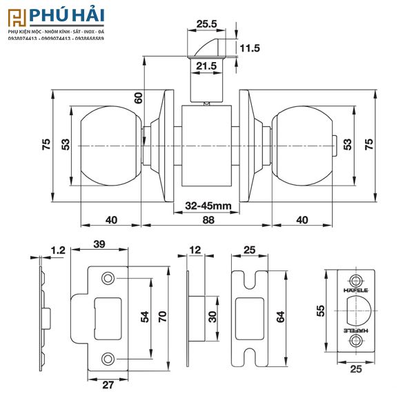 Bộ khóa tay nắm tròn cửa đi, WC HALEFE 489.93.135