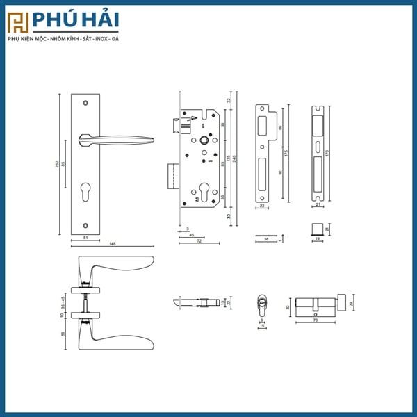 Khóa Cửa Nẹp Vickini 32015 màu vàng