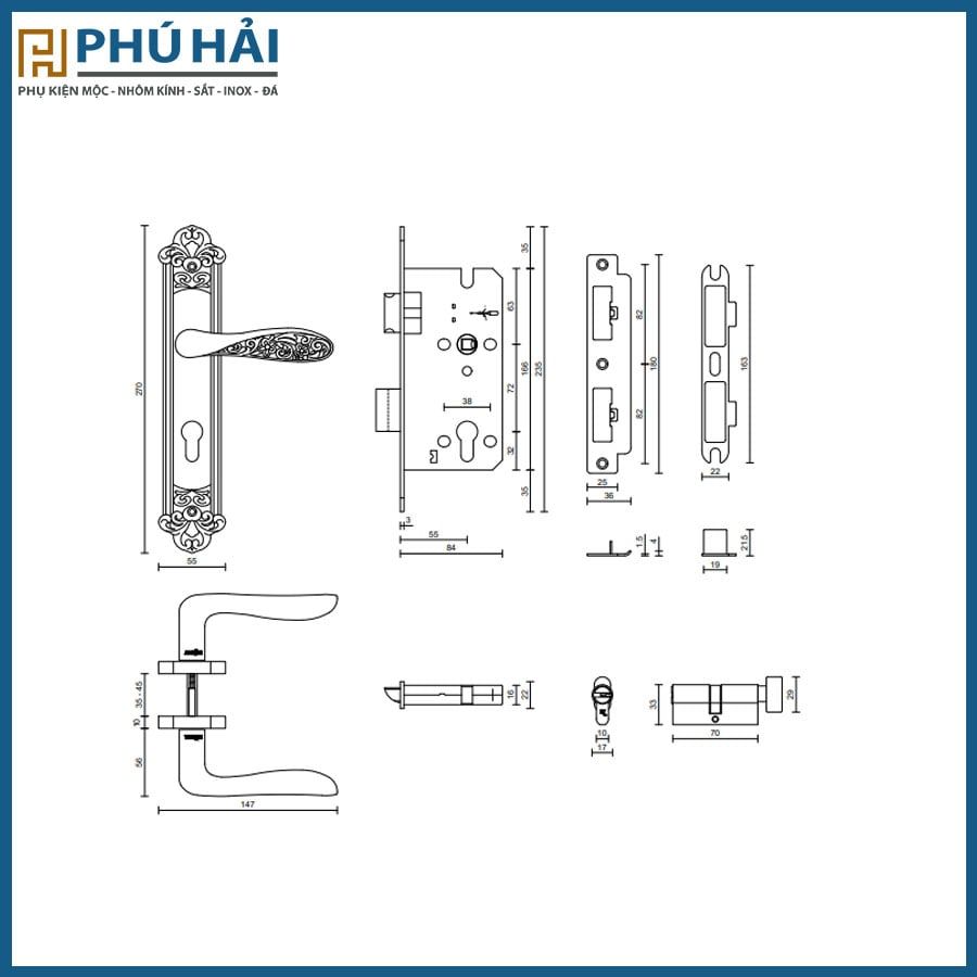 Khóa cửa nẹp VICKINI 35768.101 CF cafe vàng ruột chốt(12B/T)
